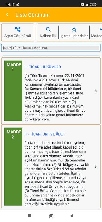 Aplicación para consultar el Código de Comercio Turco